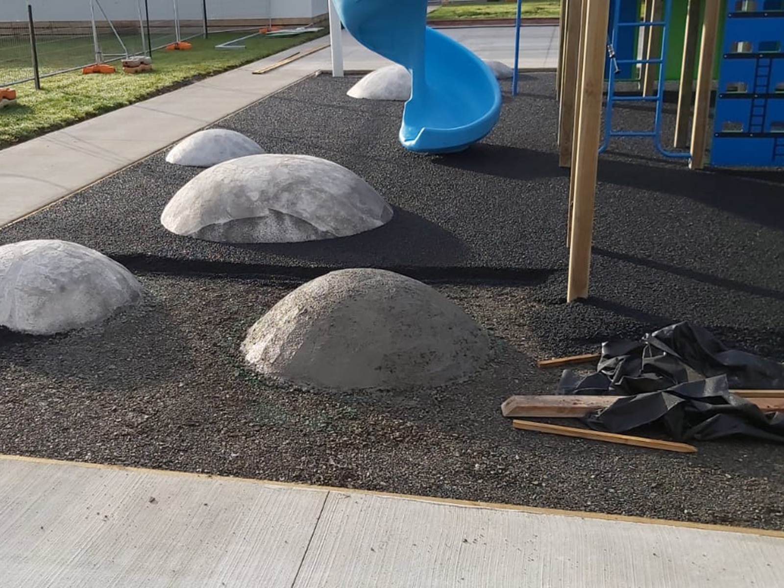 Pour’n’Play mounds were created to resemble sand allowing the students to leap from place to place. These additions have enhanced play at the school; encouraging the students to get creative while testing their physical abilities.