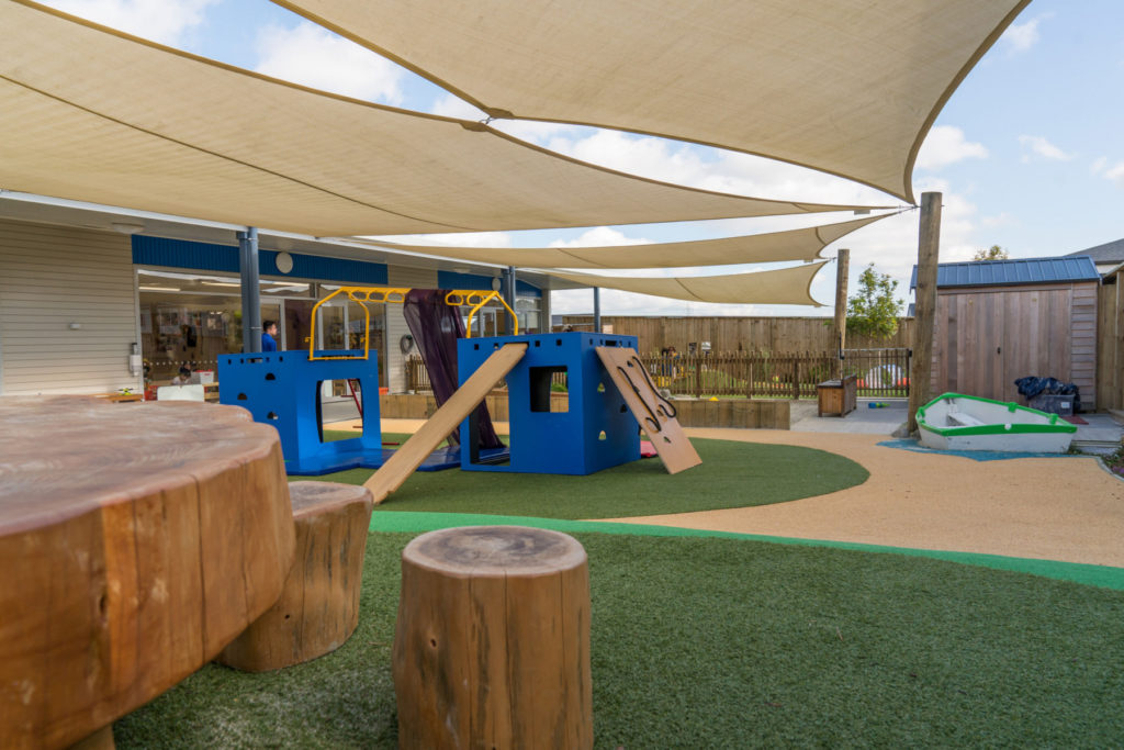 The Centre now has two areas, one that is designated for children aged between 0 to 2 years, and the other that caters for older children aged 2 to 5 years. While separate, the two spaces allow for a good visual connection between the two age groups. Both areas have large covered spaces to accommodate play in any weather condition, and surfaces are comprised of Pour’n’Play and artificial turf, which are ideal for toddlers learning to walk as well as for older children running around.