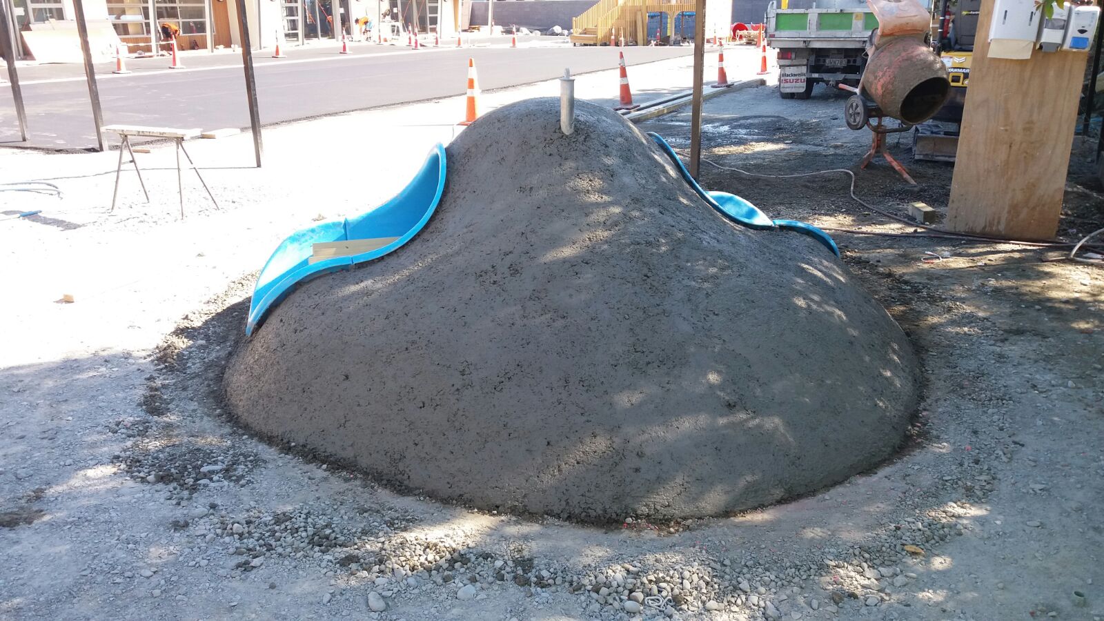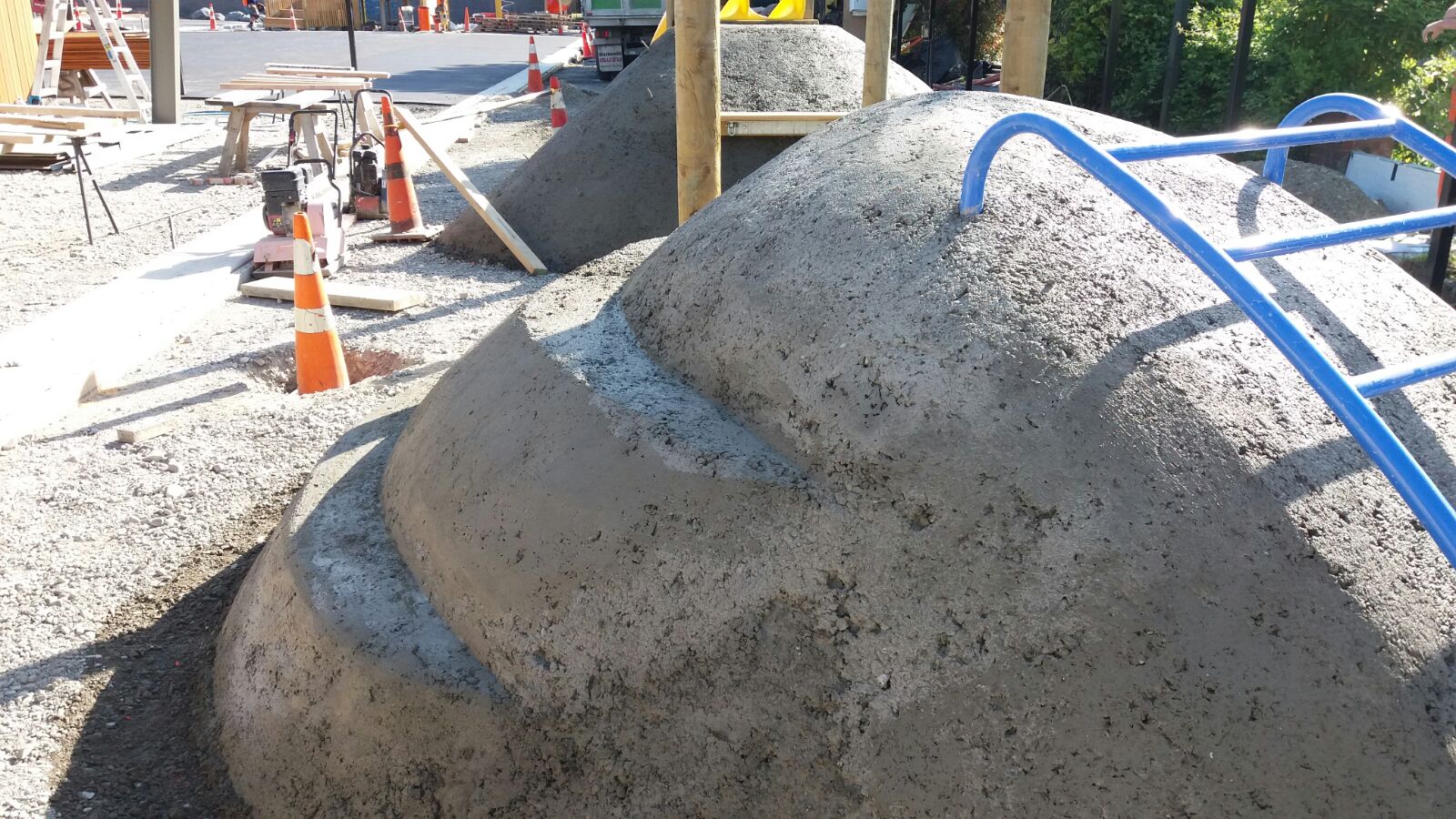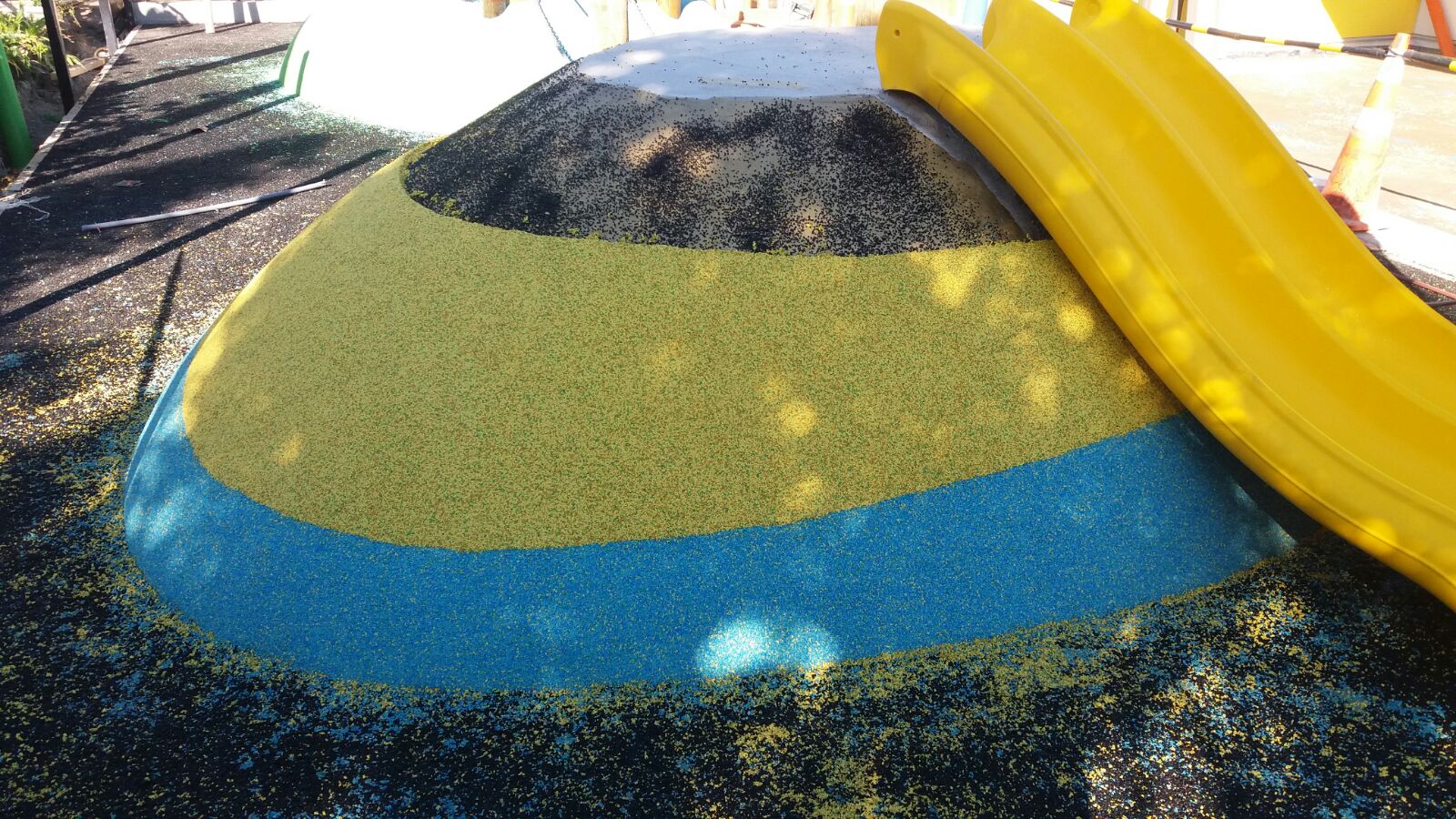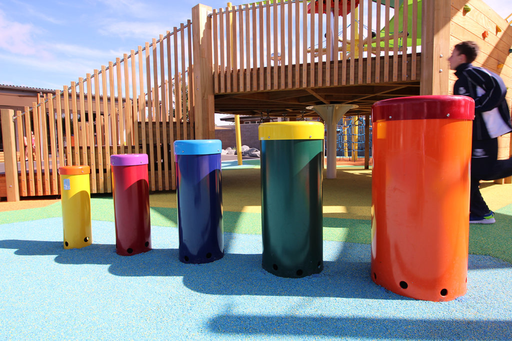 The Pre-School design included three ‘Play Eggs’ made out of Numat’s Pour‘n’Play, each with their own play feature; climbing grips, a slide, a tunnel, and even a bridge between two of the eggs. The Pour’n’Play was installed in bands or colour giving the eggs a fun and almost festive feel.