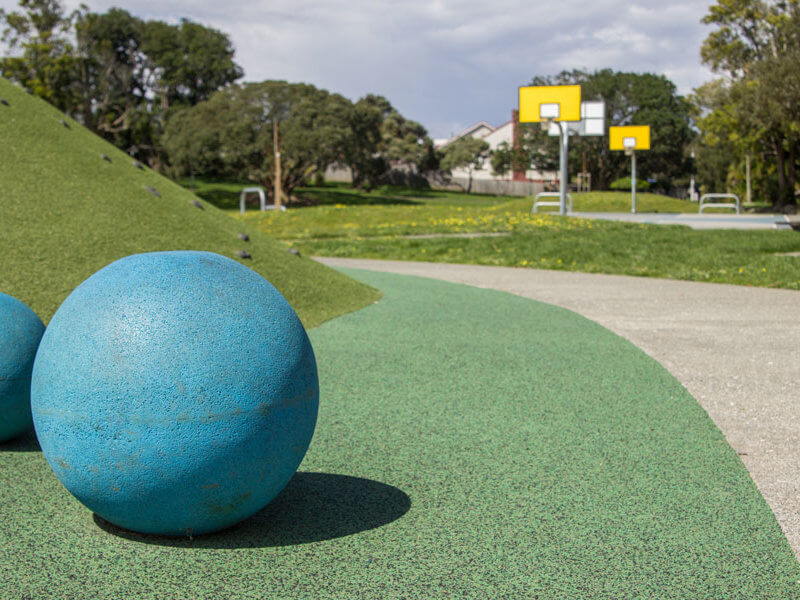 Numat installed Dunedin’s first Balance Park in 2020 at Market Reserve. The striking blue and yellow surfacing stands out against the surrounding park and pays homage to the region’s traditional blue and gold colours.