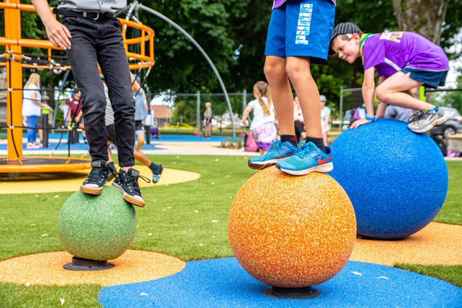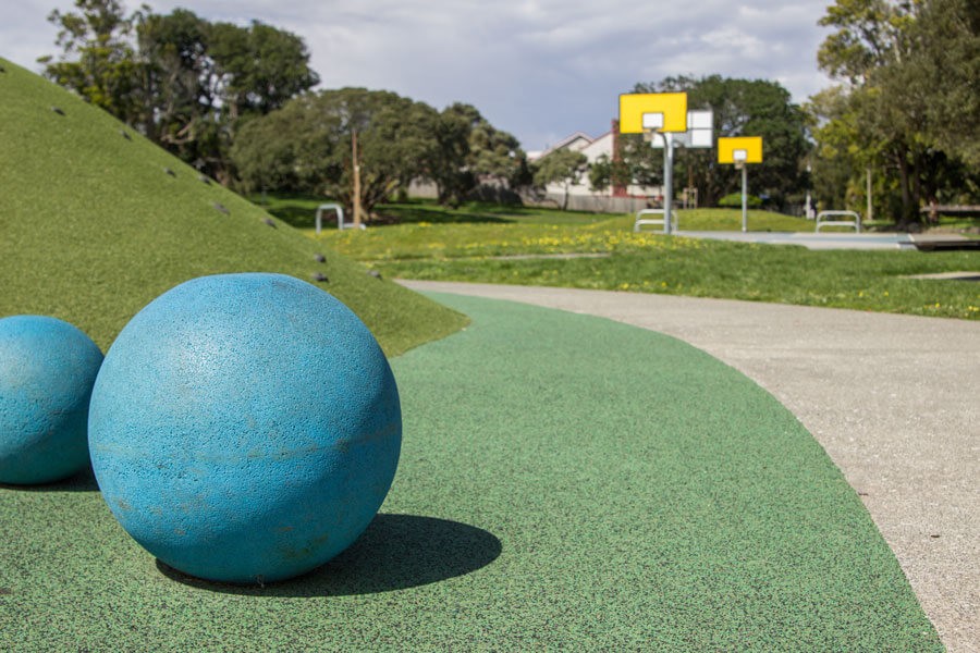 Numat installed Dunedin’s first Balance Park in 2020 at Market Reserve. The striking blue and yellow surfacing stands out against the surrounding park and pays homage to the region’s traditional blue and gold colours.